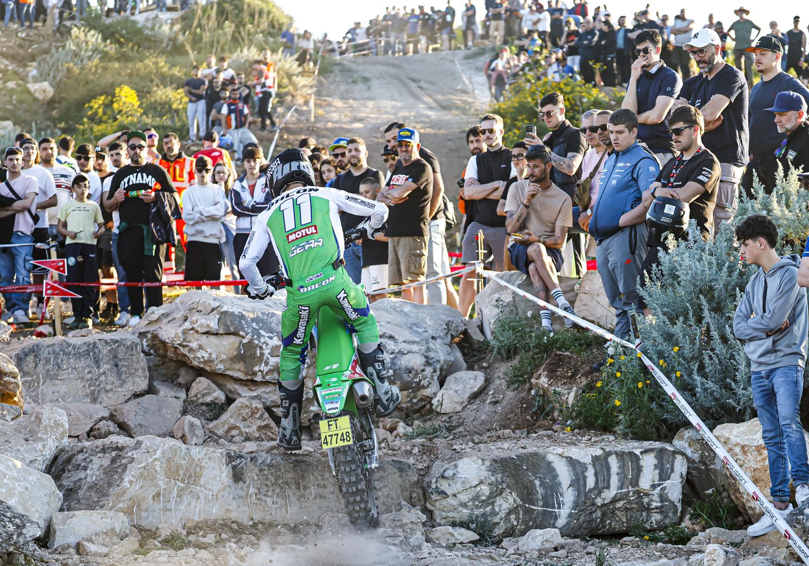 Nach seiner jüngsten Verletzung wieder im Einsatz, fuhr Bacon konstante Zeiten und fühlte sich auf seiner Kawasaki KX im Verlauf des Rennens immer wohler. Dreieinhalb Rennrunden mit zwei Zeitkontrollen und drei technischen Sonderprüfungen forderten die Weltelite des Enduro-Sports heraus. Den Auftakt machte der Extremtest: An einem felsigen Hang gelegen, erforderte er höchste Präzision und Konzentration, während der Endurotest die Fahrer auf schmalen Single-Tracks auf die Probe stellte. Der Crosstest bot den Fahrern anschließend die Chance, ihren puren Speed zu demonstrieren.