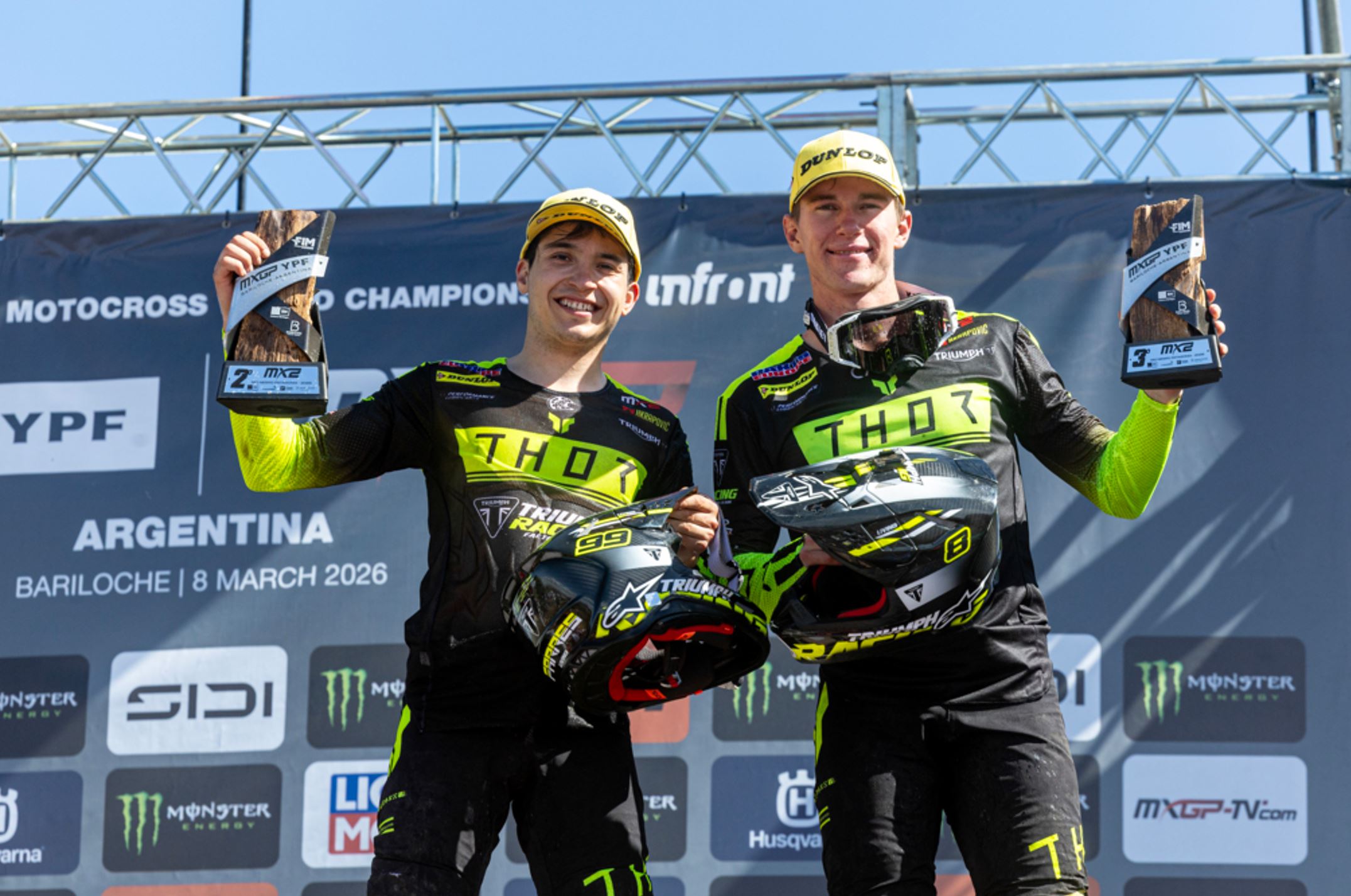 Ian Kimber – Head of Global Racing Programmes, Triumph Motorcycles „Was für ein Start in unsere Saison. Argentinien ist für unser MX2-Team etwas ganz Besonderes. Zu sehen, wie beide Jungs auf dem Treppchen stehen, ist unglaublich. Herzlichen Glückwunsch an Camden und Guillem sowie an das gesamte Team! Es ist ein Beweis für die harte Arbeit bei den Tests in der Saisonvorbereitung, um sicherzustellen, dass alles bestmöglich vorbereitet war. Wir freuen uns jetzt auf den Rest der Saison!“