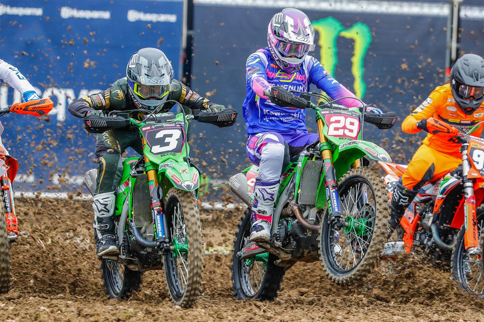 Der über Nacht gefallene Schnee war zu Beginn der Rennen bereits geschmolzen, und die Priorität in den ersten Runden lag darin, kostspielige Fehler zu vermeiden. Der Spanier nutzte in der Eröffnungsrunde Außenlinien, um auf den sechsten Platz vorzurücken, und begnügte sich dann für einige Runden damit, das Geschehen kontrolliert zu beobachten, während sich eine ideale Fahrlinie herausbildete. Nachdem er drei Runden lang geduldig alternative Linien analysiert hatte, schaltete er die Konkurrenz klinisch präzise einen nach dem anderen aus. In der achten Runde stürmte er in der Wellensektion in Führung. Mit einem Faustschlag in die Luft und einem Klaps auf das rote Schild des Tabellenführers an der Vorderseite seiner KX250 feierte er beim Überqueren der Ziellinie einen weiteren souveränen Doppelsieg.