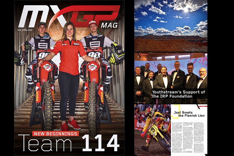 Youthstream is proud to announce that the fifty-sixth issue of MXGP Mag is now online. In the newest issue of the MXGP Mag we feature the newest team making waves in the paddock, Honda 114 Motorsports. Also included in Issue #56 we give a recap of round 2 and 3 of the FIM Motocross World Championship, get you caught up with the activities of MXGP Academy, talk about the IRP Bal de Printemps event, and afterwards we throw it back to the past with a write-up on Heinz Kinigadner’s 1984 KTM 250, and Motocross Hall of Famer Joel Smets.