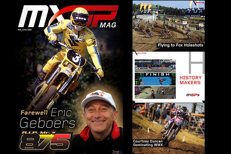 Youthstream is proud to announce that the fifty-eighth issue of MXGP Mag is now online. In the newest issue MXGP Mag features the life of Eric Geboers in a dedicated tribute article. Also included in Issue #58 we feature WMX points leader Courtney Duncan, give a recap of rounds 6-8 of the FIM Motocross World Championship, highlight the competitiveness of the European Motocross Championships and afterwards we throw it back to the past with a write-up on Kurt Nicoll’s 1987 Kawasaki 500 and Motocross Hall of Famer Shayne King.
