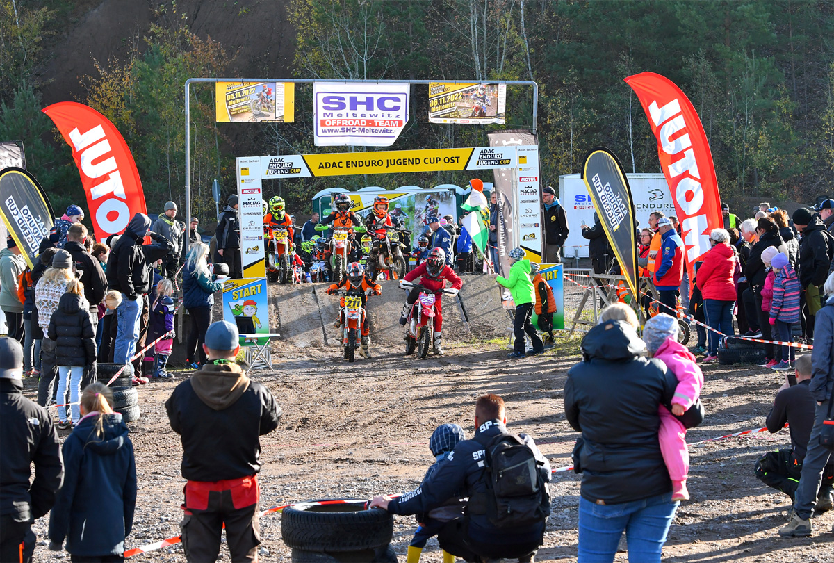 Am vergangenen Wochenende war der ADAC Enduro Jugend Cup Ost beim SHC Meltewitz e.V. im ADAC zu Gast. Der Ortsclub wurde Ruf wieder vollkommen gerecht und zauberte für die knapp 80 Teilnehmer und Teilnehmerinnen aus insgesamt acht Bundesländern erneut eine Strecke, die Maßstäbe setzte. Besonders hervorzuheben ist, dass es für die großen Klassen zwei unterschiedliche Sonderprüfungen gab. Aus diesen Kategorien gingen Henry Strauß (125), Fabio Schiffner (85A) und Noah Rübesamen (85B) als Sieger hervor, während bei den Kleinen Elias Neukirchner (65) und Jordan Wittenberg (50) auf dem obersten Treppchen standen. Bei den Ladies setzte Lina Süßmuth ihre Erfolgsserie weiter fort und die Offroad-Rookies gewannen zum ersten Mal die Team-Wertung.