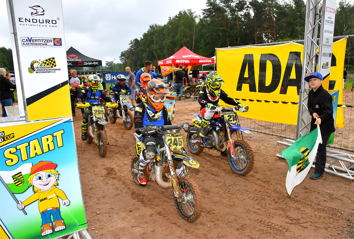Der ADAC Enduro Jugend Cup Ost gastierte erstmals im südthüringischen Neuhaus-Schierschnitz auf dem Gelände des MC Isolator e.V. im ADAC. Der engagierte Motorsport-Verein warf alles in die Waagschale, um den Kindern und Jugendlichen eine wahrhaftige Geländefahrt zu bieten, die ihrem Namen zu hundert Prozent gerecht wurde. Neben zwei charakteristisch vollkommen unterschiedlichen Sonderprüfungen enthielt die Runde manch anspruchsvolle Auf- und Abfahrt. Selektive Waldpassagen waren ebenso enthalten, wie eine weite Strecke auf abgeernteten Ackerflächen, auf denen die knapp 70 Teilnehmer mächtig Gas geben konnten.