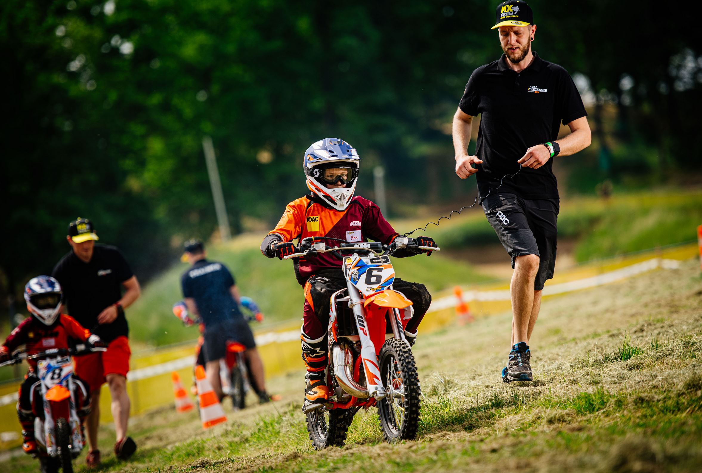 Die ADAC MX Academy powered by KTM geht 2024 in die zwölfte Saison. Neben Kursen an den sechs festen Standorten wird das Angebot der mobilen ADAC MX Academy „on tour“ im dritten Jahr noch weiter ausgebaut. Bei den ein- oder halbtägigen Schnupperkursen ermöglichen speziell geschulte und erfahrene Trainer Kindern und Jugendlichen im Alter von 6 bis 13 Jahren einen sicheren und einfachen Einstieg in den Motocross-Sport. Vereine und Veranstaltungen profitieren von dem fahrenden Kurskonzept, das Lehrgänge an nahezu jedem Vereinsgelände oder im Rahmen von Veranstaltungen ermöglicht. Das benötigte Equipment wie die KTM-Motorräder, Schutzausrüstung inklusive Helm, Stiefeln und Protektoren sowie lizensierte Trainer sind im Paket enthalten.