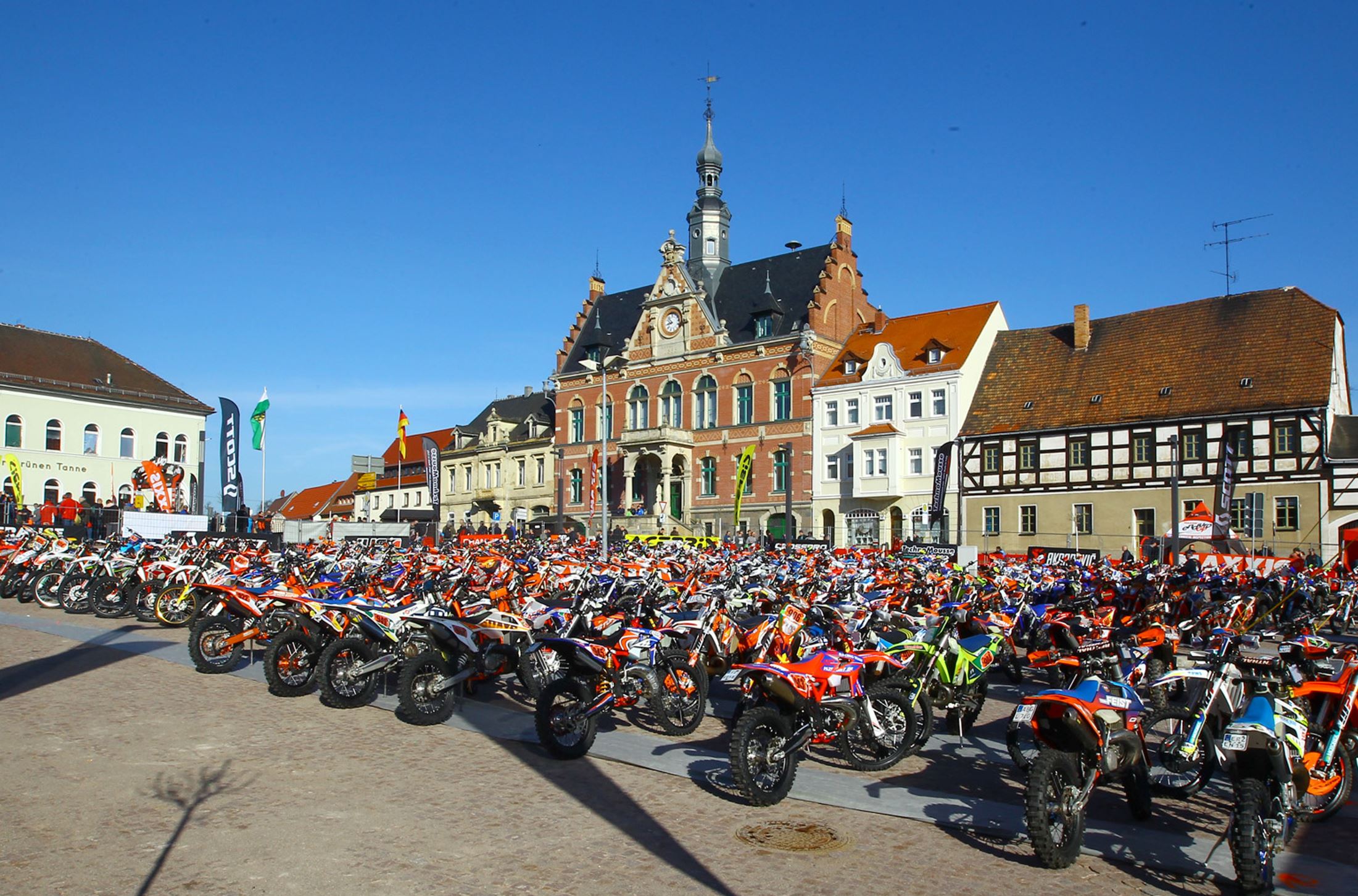 Ein Abstecher zum Dahlener Marktplatz macht aber auch insofern Sinn, weil dort am Samstagnachmittag die technische Abnahme der Wettbewerbsmotorräder durchgeführt wird und es somit schon einiges zu sehen gibt. Wenn sich der Parc Fermé dann allmählich füllt, gibt das auch immer ein nicht nur für Fotografen imposantes Bild.
