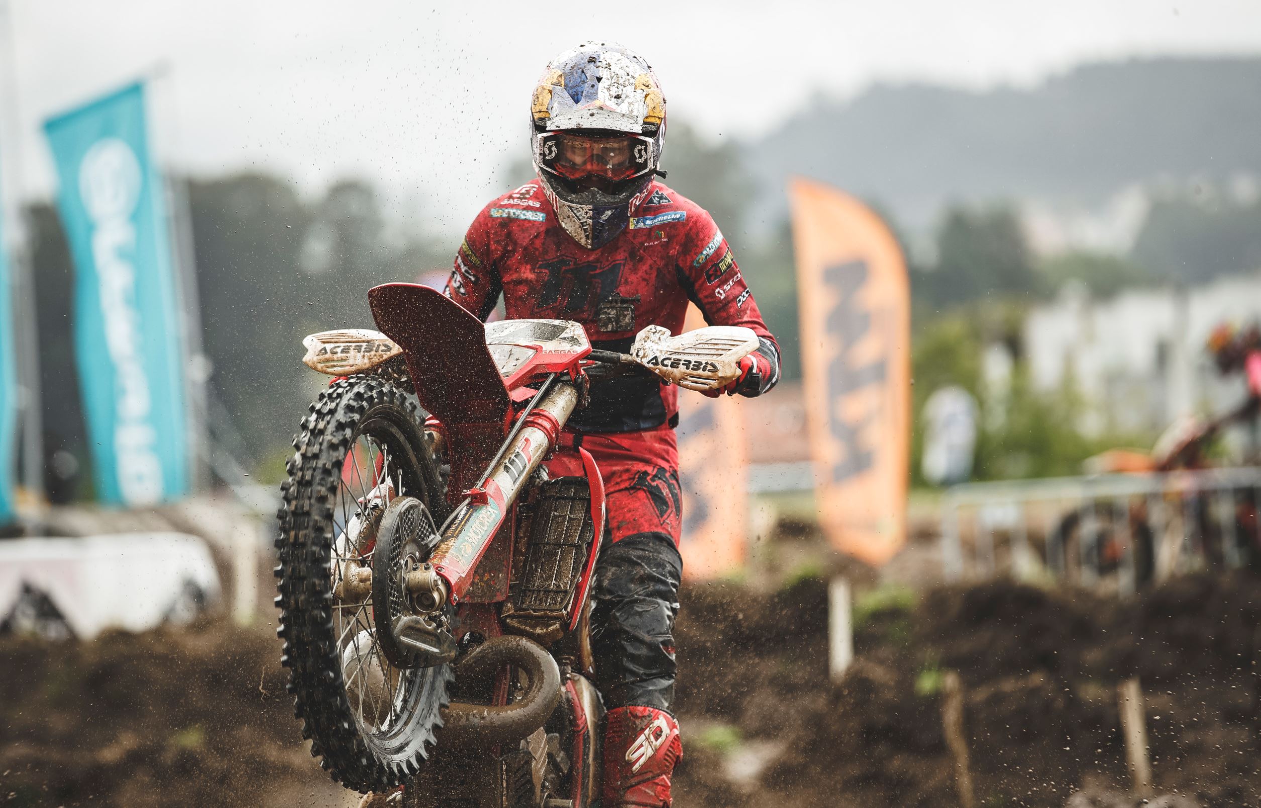 Right from the off, Taddy showed he meant business, posting the third-fastest time on Saturday’s short qualifying session. Frustratingly for all involved, near perfect qualifying track conditions were replaced by mud. Lots of mud! Not fazed by the extremely wet and tough conditions, the Polish hard enduro legend made a great start to the day by completing the first of three pro class finals in second place.