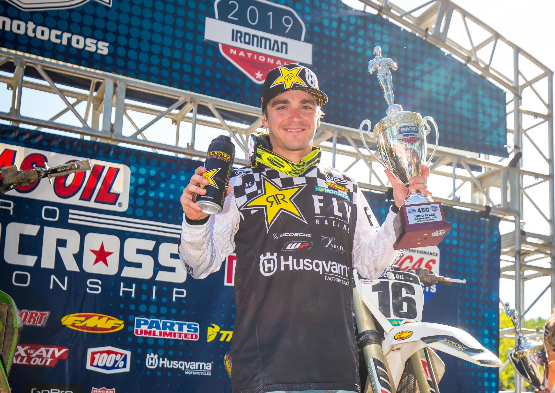 The Rockstar Energy Husqvarna Factory Racing Team took on the final round of the 2019 AMA Pro Motocross Championship on Saturday in Crawfordsville, Indiana for the Ironman National. Team rider Zach Osborne ended his rookie 450MX season on a high note after securing his sixth overall-podium of the season with a third-place finish. His teammate, Michael Mosiman, had a great day in the 250MX class as he closed out the season with a fifth overall finish.