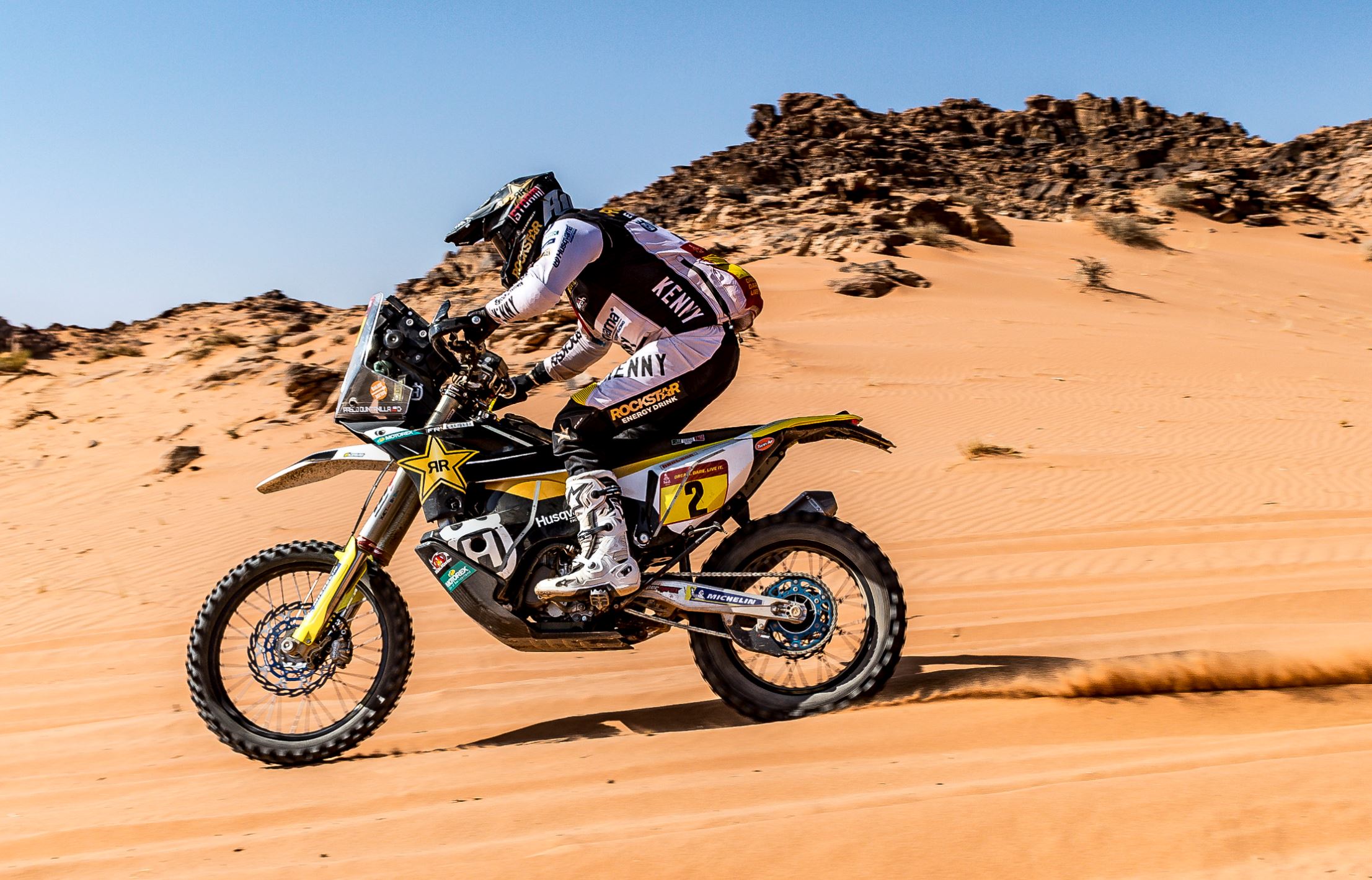 ROCKSTAR ENERGY HUSQVARNA FACTORY RACING RIDERS SUCCESSFULLY COMPLETE DAKAR MARATHON STAGE.