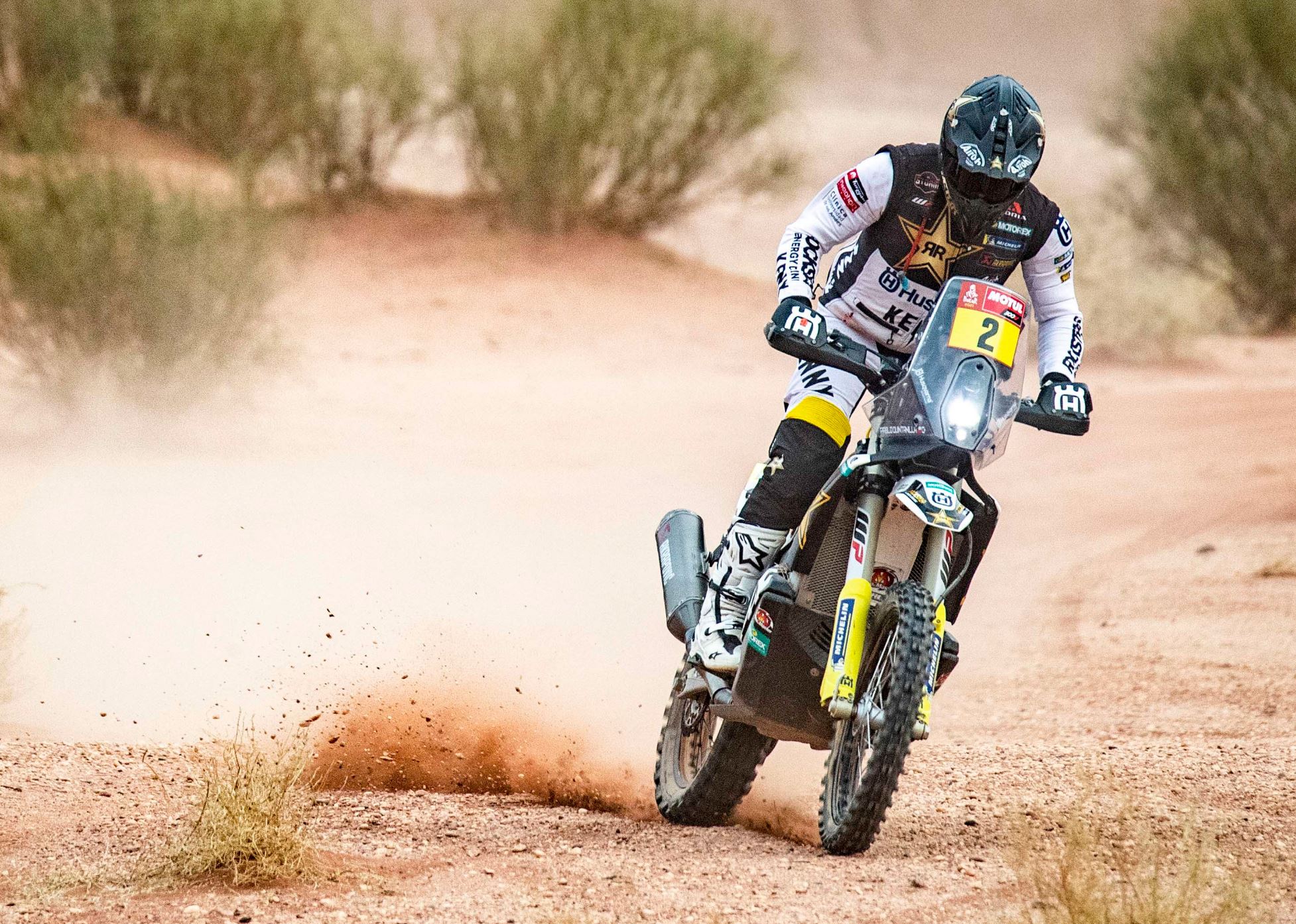 Rockstar Energy Husqvarna Factory Racing’s Pablo Quintanilla has successfully completed stage 10 of the 2021 Dakar Rally. On another tough day that challenged competitors with some very fast terrain and tricky navigation throughout, Quintanilla brought his FR 450 Rally home in 15th position and now lies eighth in the provisional overall standings.