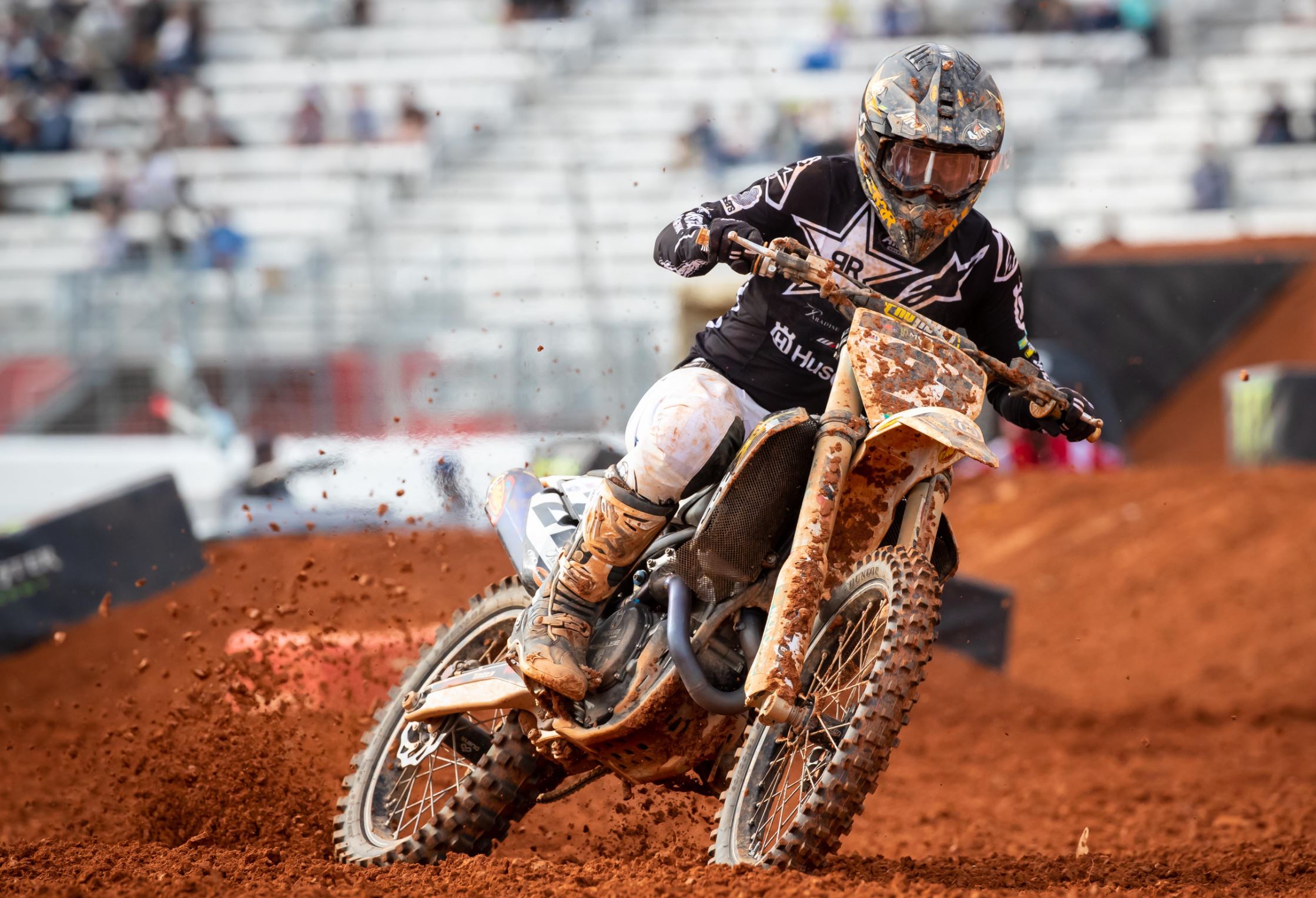 Following two weeks off from racing, the Rockstar Energy Husqvarna Factory Racing Team returned to the AMA Supercross World Championship paddock on Saturday for the first of three rounds taking place inside Georgia’s Atlanta Motor Speedway this week. Despite a chaotic start to the day with inclement weather conditions, Jason Anderson rose to the occasion as the fastest 450SX qualifier and heat-race winner before concluding the night just off the podium with a positive finish in fourth.