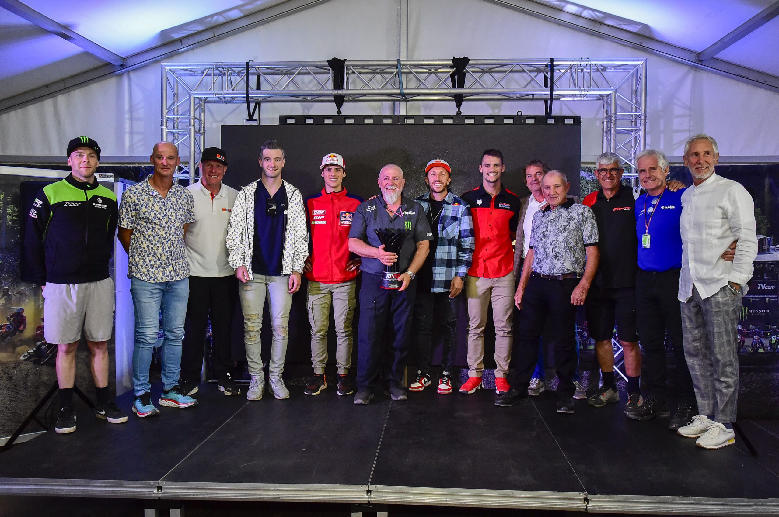 This eventful introduction of the evening concluded with a family photo of Giuseppe Luongo and all the legends of the sports, from the past to today. 44 Motocross World Championship victories between them. The mutual respect between these legends of the sport and Giuseppe Luongo, who propelled motocross to this current and impressive level, was palpable and a beautiful image for motocross.