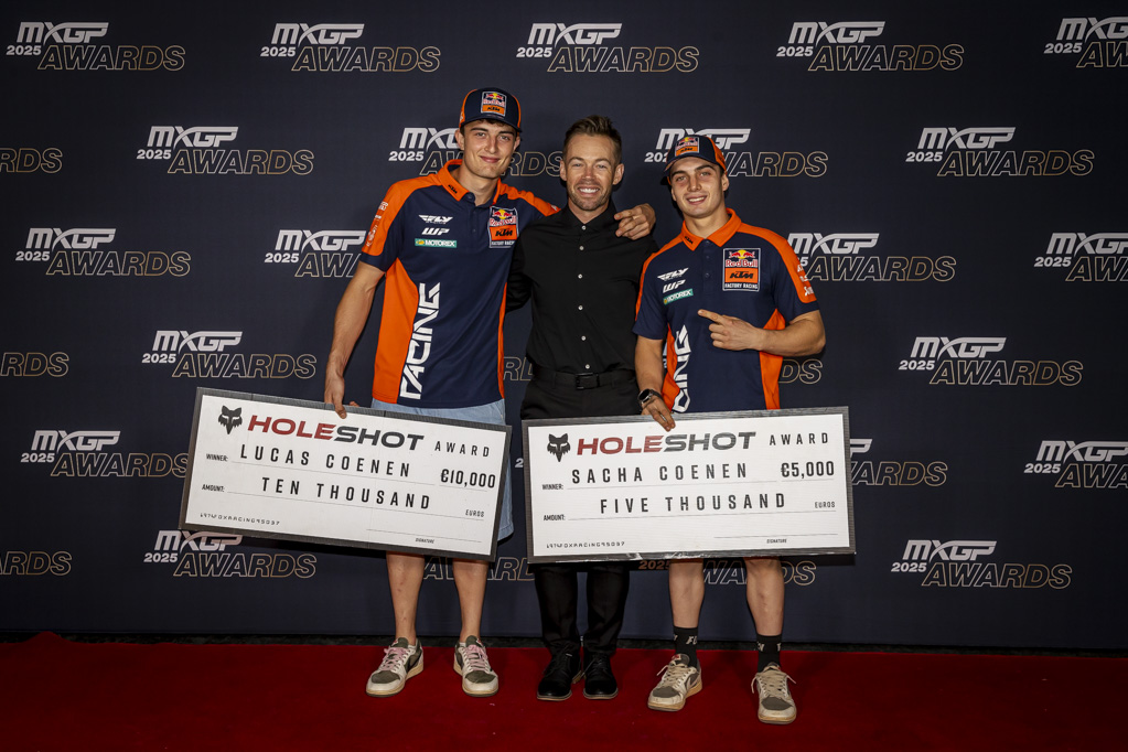 Lucas and Sacha Coenen officially received their Fox Holeshot Awards during the MXGP Awards in Darwin, Australia, held against the iconic sunset backdrop of Mindil Beach. The ceremony was streamed live worldwide via MXGP-TV, YouTube, and Facebook, allowing fans across the globe to celebrate this achievement with them.