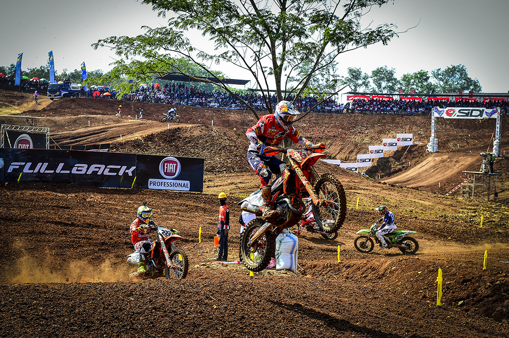 The MX2 Championship fight is in full force after today’s MXGP of Asia in Semarang. Race one began with Red Bull KTM Factory Racing’s Jorge Prado taking the Fox Holeshot ahead of his Red Bull KTM Factory Racing teammate Pauls Jonass.