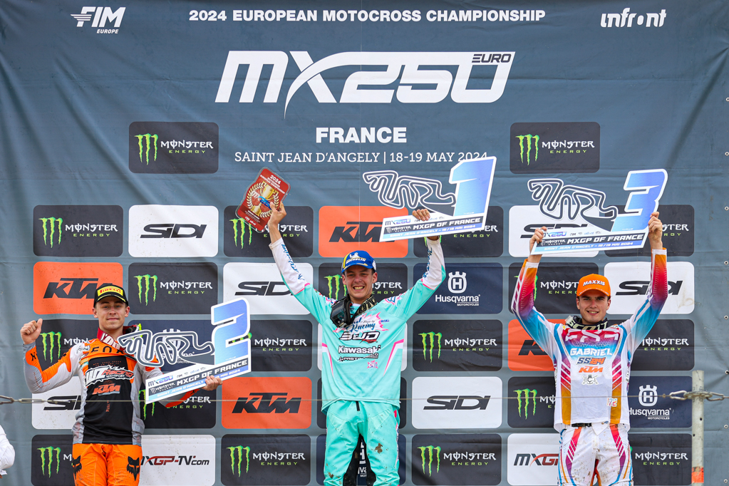 The fourth round of the EMX250 and fifth of EMX125 Presented by FMF Racing went to St Jean D’Angely during the Monster Energy MXGP of France. As we are now used to witness, the French fans show so much passion and enthusiasm for motocross and came in numbers, braving the changing weather conditions over the weekend which made this round another exceptional event.