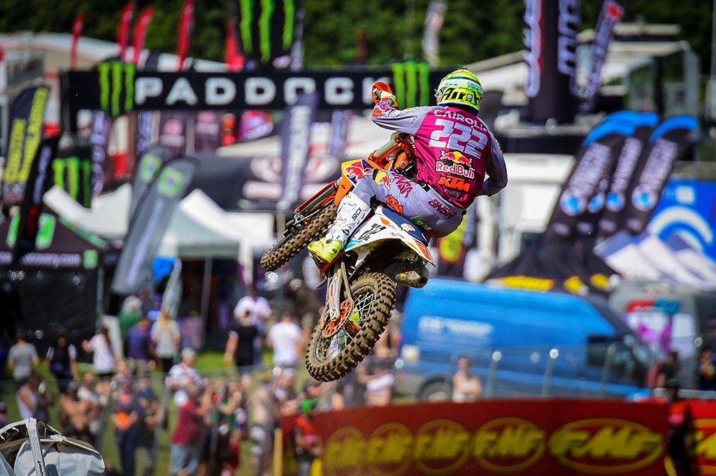 The 2018 MXGP of Great Britain is underway at the Matterley Basin circuit after today’s busy Qualifying races. Gifted with warm weather and sunshine the grass lined and hilly British track was epic today. Taking holeshots and winning their respective qualifying races by massive margins were Red Bull KTM Factory Racing’s Antonio Cairoli and Jorge Prado.