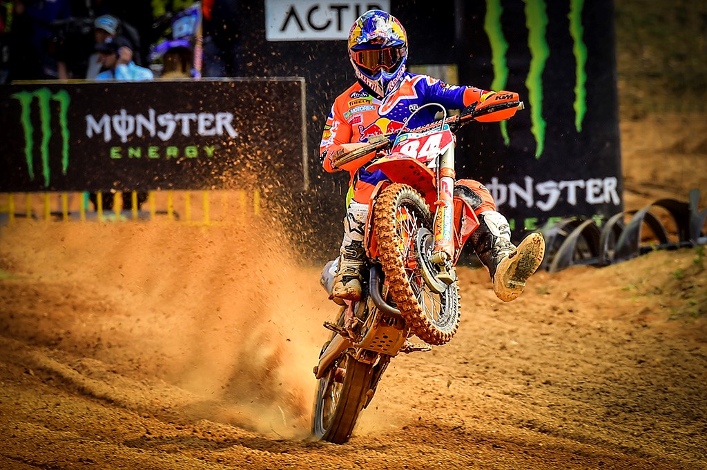 MXGP’s Qualifying racing started with the main contenders of Red Bull KTM Factory Racing’s Antonio Cairoli and Jeffrey Herlings 1st and 2nd. Cairoli led Herlings for several laps as the #84 searched for the best lines.