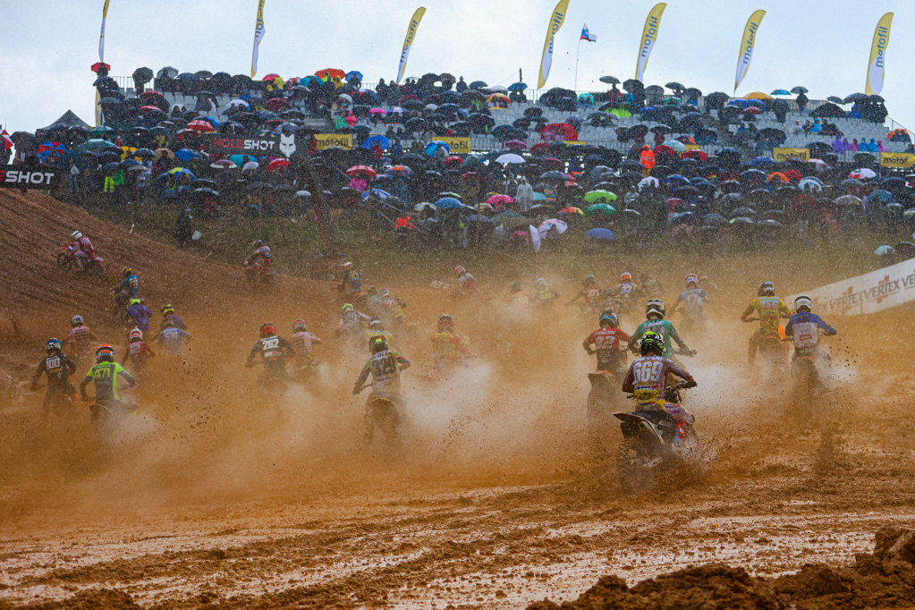 Conditions were already challenging when the EMX125 Presented by FMF Racing riders lined up for Race 1 in Águeda, Portugal. The red soil quickly turned to deep ruts and slick corners as rain began falling mid-race, setting up a dramatic and unpredictable contest for round six of the series.