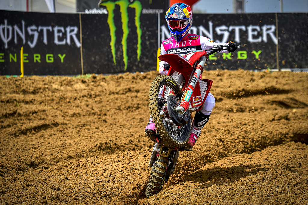 Fastest in practice by over half a second, it’s clear that defending World Champion and Red Bull GASGAS Factory Racing team leader Prado was in no mood to be beaten on home ground. The trademark start technique was only nearly matched by Monster Energy Yamaha Factory MXGP man Maxime Renaux, although Team Ship to Cycle Honda’s rookie Kevin Horgmo rushed into turn two in 2nd place! Romain Febvre for Kawasaki Racing Team and Red Bull KTM Factory Racing star Jeffrey Herlings were mired deep in the pack, and Team HRC’s Tim Gajser had to fight past both Horgmo and Fantic Factory Racing rider Glenn Coldenhoff to get to 3rd at the end of the second lap.