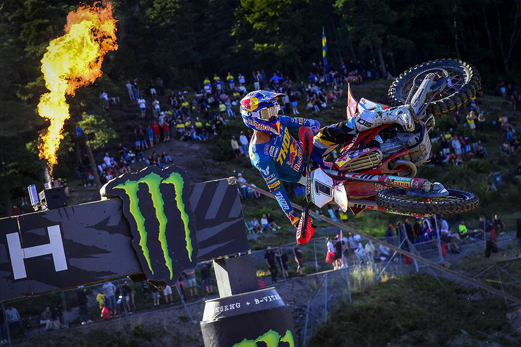 With temperatures unusually high for the northernmost MXGP event of the season, the event was to be a test of mental fitness and concentration on the hard-packed, loose surface, and fans from all over Scandinavia and Europe created a stunning atmosphere as the smoke flares and the noise machines cranked up around the rocky valley! A special mention has to go to home hero Isak Gifting, who wore a toy Viking helmet over his race one, as well as a Swedish flag cape, for the sighting lap of each race on his JK Racing Yamaha, provoking a wonderful response from the crowd that obviously inspired him for when the gate dropped!