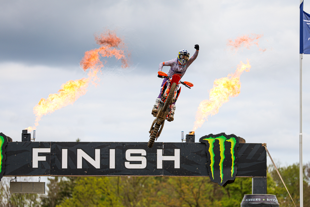 August Frisk: “It was amazing. Hard work paid off! I’ve had some tough starts to the year, but this weekend everything clicked. Two holeshots, two wins, and I didn’t touch the suspension all weekend, that’s how good I felt. It’s unbelievable, I have no words! This first EMX250 win will give me a lot of confidence going forward.”