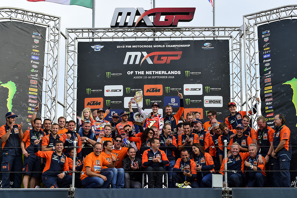 The most challenging season in the history of the FIM Motocross World Championship crowned Red Bull KTM Factory Racing’s Jeffrey Herlings 2018 MXGP Champion and overall winner today in Assen while Red Bull KTM Factory Racing’s Jorge Prado topped MX2.