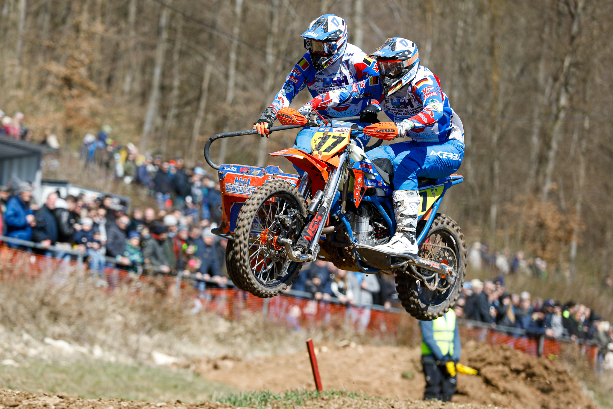 Nach dem Saisonauftakt im Sand von Hänchen, wo Tim Prümmer und Jarno Steegmans Platz 2 in der Tageswertung der Deutschen Motocross Meisterschaft in der Kategorie Seitenwagen belegten, ging es ebenfalls in Schnaitheim in Runde 2. Wie bereits in Hänchen waren sie auch in Schnaitheim die Trainingsschnellsten und durften zuerst ans Startgatter ziehen. Leider konnten sie diese Position nicht optimal nutzen und mussten zunächst der Konkurrenz den Vortritt lassen. Nach wenigen Runden konnten sie sich auf Position 3 nach vorn arbeiten und hielten diesen bis zum Rennende. Im zweiten Durchgang starteten sie besser und konnte schnell die Führung übernehmen. Nach einem kurzen und packenden Zweikampf wurden sie von der Spitze verdrängt, wurden Zweiter und belegten in der Tageswertung Platz 3. In der Meisterschaft rangieren sie nun nach zwei gefahrenen Runden auf Platz 2.