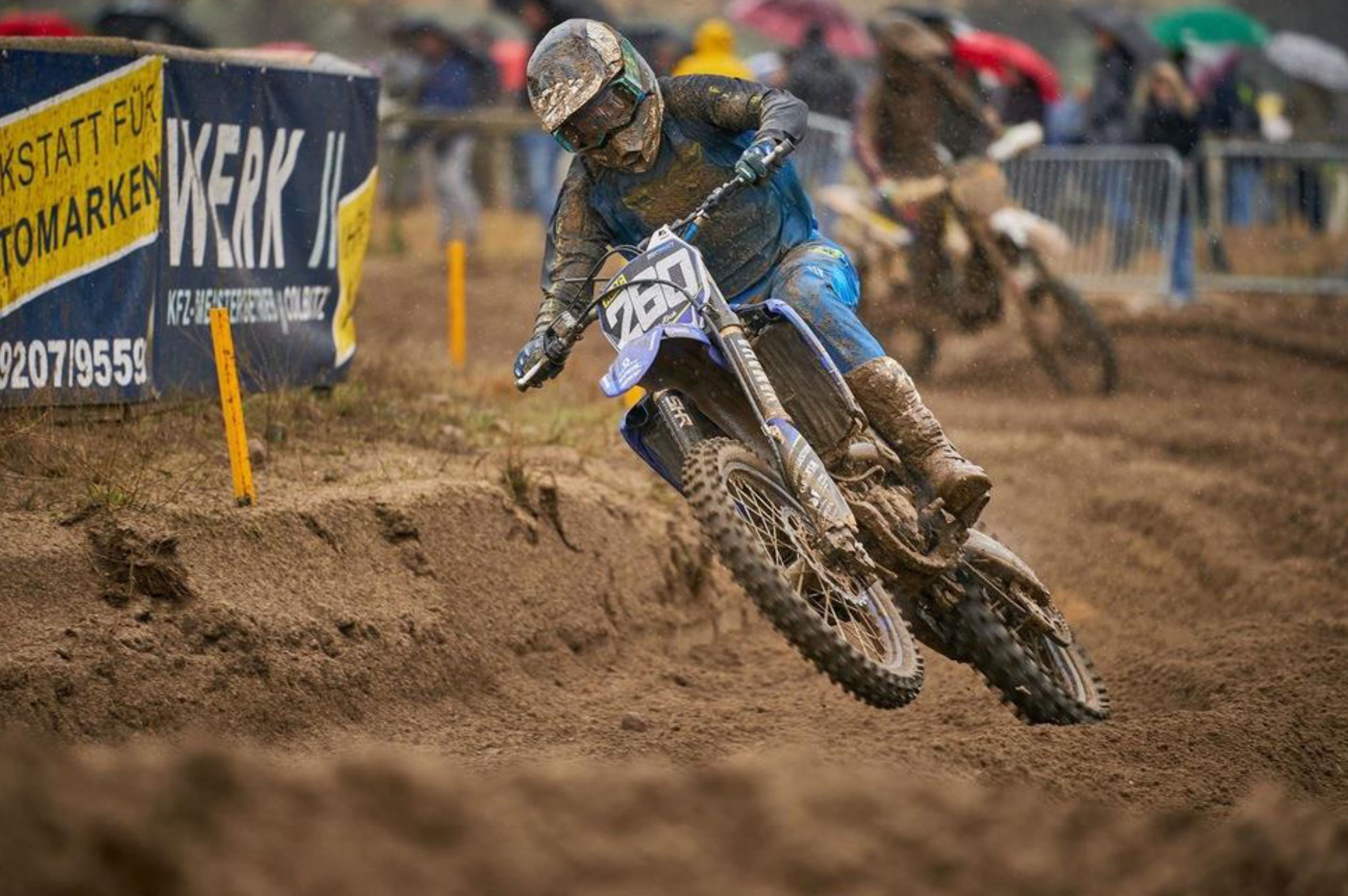 Der 20jährige Nico Koch nahm die Herausforderung mit seiner 250er Viertakt-Yamaha an. In der Qualifikation kam Nico gut zurecht und holte als Sechster einen top Startplatz. Im ersten Lauf lag der Braunschweiger lange Zeit auf Platz 5, stürzte leider kurz vor Schluss und schaffte es aber noch Rang 7 zu sichern. Der zweite Lauf begann leider mit einem Sturz in der ersten Runde, da der Dauerregen die Strecke in eine Schlammwüste verwandelte. Aber Nico bewies Kampfgeist und fuhr vom vorletzten Platz noch bis auf Rang 9 vor. Respekt! „Die beiden Stürze lassen das Ergebnis ein bisschen schlechter aussehen“, zeigte sich der junge Yamaha-Pilot kritisch. „Aber dennoch war es ein super Vorbereitungsrennen und ich bin wirklich happy mit dem Fortschritt, den wir über den Winter gemacht haben.“