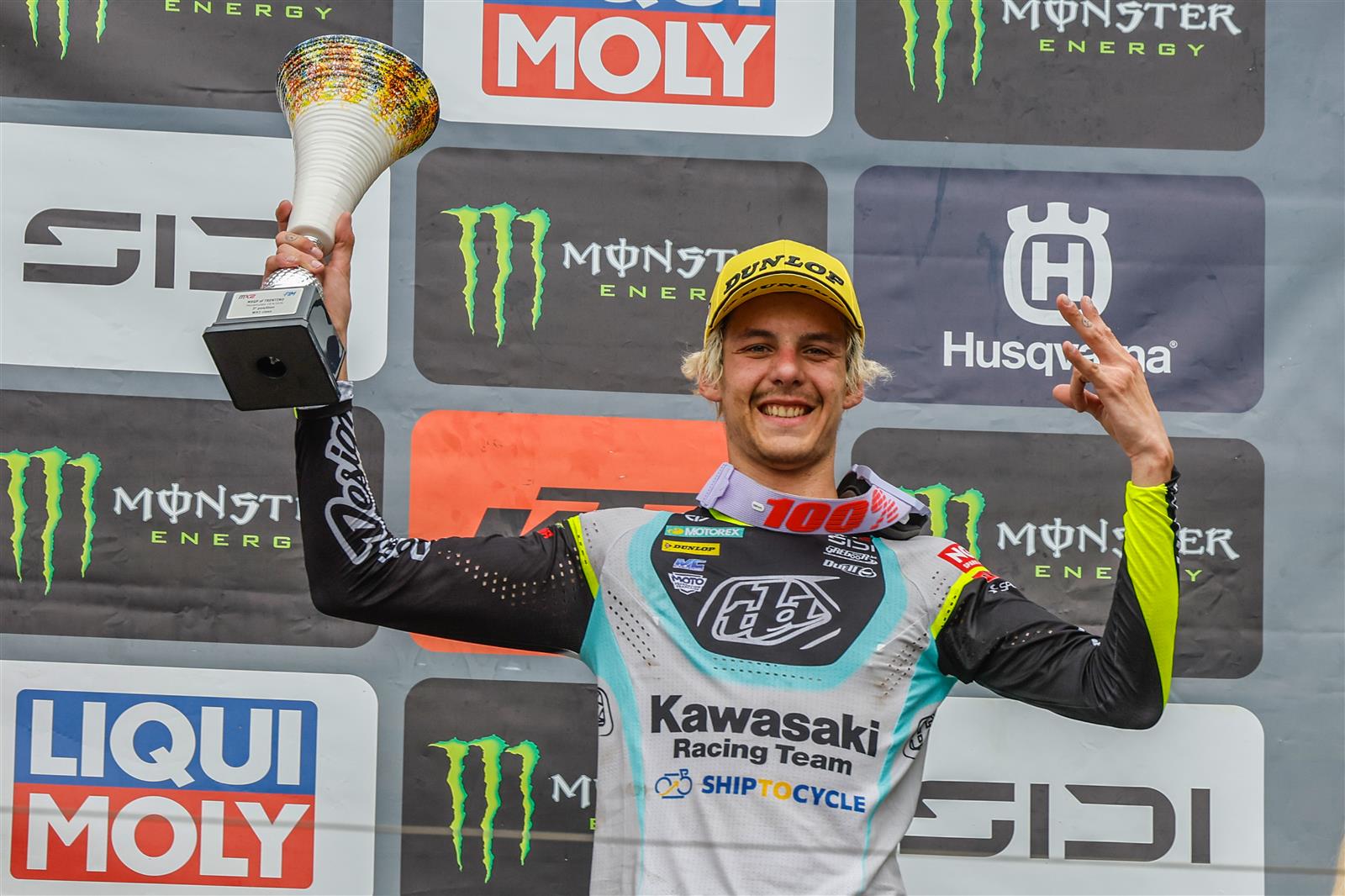 Ein hervorragender Start aus der Mitte des Gatters sah den französischen Teenager nur knapp am Holeshot vorbeischrammen, während ein schweres Regengewitter über die Strecke im Schatten der Dolomiten zog. Der Regen ließ nach ein paar Runden nach, sorgte aber weiterhin für rutschige Streckenbedingungen. Er fuhr ein fehlerfreies Rennen, widerstand allen Angriffen und kontrollierte den zweiten Platz bis zur Zielflagge. Im zweiten Rennen gelang es ihm nicht ganz, in der ersten Kurve am Feld vorbeizuziehen, und er wurde zudem am ersten Anstieg aufgehalten, als ein anderer Fahrer direkt vor ihm stürzte. Er pushte für den Rest des Rennens hart von außerhalb der Top 15 und suchte links wie rechts nach Überholmöglichkeiten. Nach fünfzehn Minuten kämpfte er sich auf den zehnten Platz vor und hielt das Tempo hoch, um schließlich als Siebter direkt am Hinterrad des Sechstplatzierten ins Ziel zu kommen. Er wurde für seine Bemühungen mit seinem ersten Gesamtpodium der Saison belohnt und festigte seine Position in der Meisterschaftswertung; obwohl er weiterhin Siebter ist, ist er deutlich näher an den sechsten Platz herangerückt.