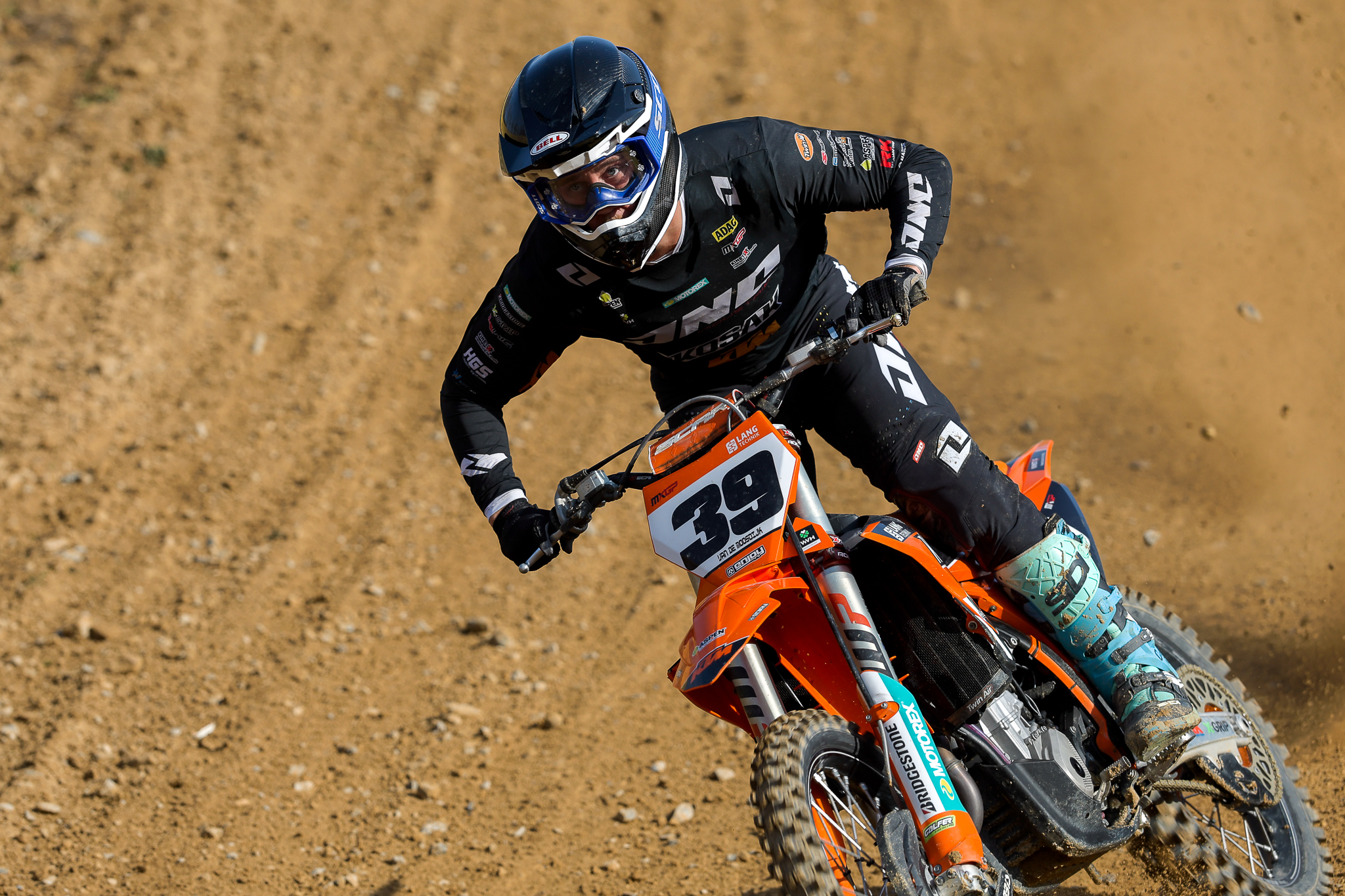 In der Königsklasse standen zwei kräftezehrende Läufe über jeweils 30 Minuten plus zwei Runden auf dem Programm. Der Mann der ersten Sekunden war zweifellos Noah Ludwig vom KTM Sarholz Racing Team. Mit zwei fulminanten Holeshots katapultierte er seine Maschine in beiden Läufen als Erster in die berüchtigte erste Kurve und versetzte die Zuschauer in Ekstase.